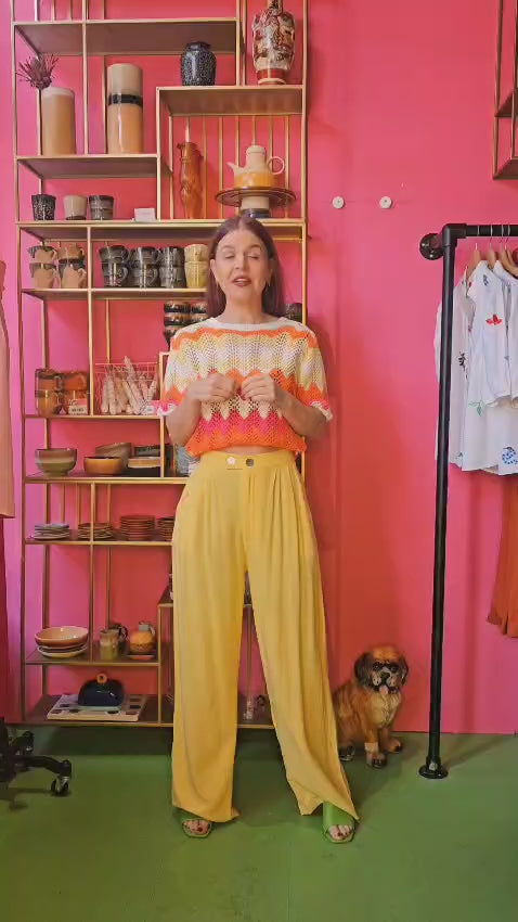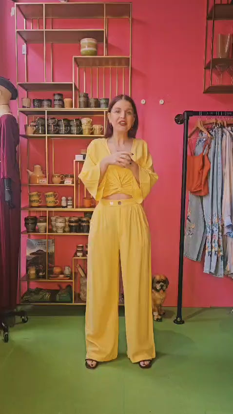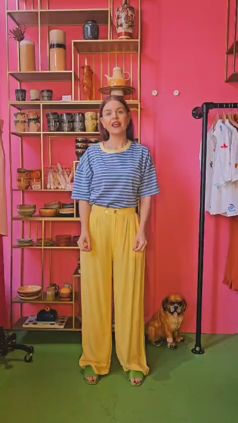 Deze prachtige unieke collectie is speciaal geproduceerd voor Bob & Bill. Van fijne natuurlijke materialen, fairtrade tot aan echte Bob & Bill eye-catchers. In samenwerking met het atelier in Berawa is deze unieke collectie tot stand gekomen.Deze broek heeft een prachtige soepele pasvorm met elastiek aan de achterkant. Combineer 'm met onze wrap top voor een co-ord set. Het item is fair-trade eco gemaakt en komt in een luxe linnen rayon crêpe stof.Materiaal / duurzame keuzelinnen rayon