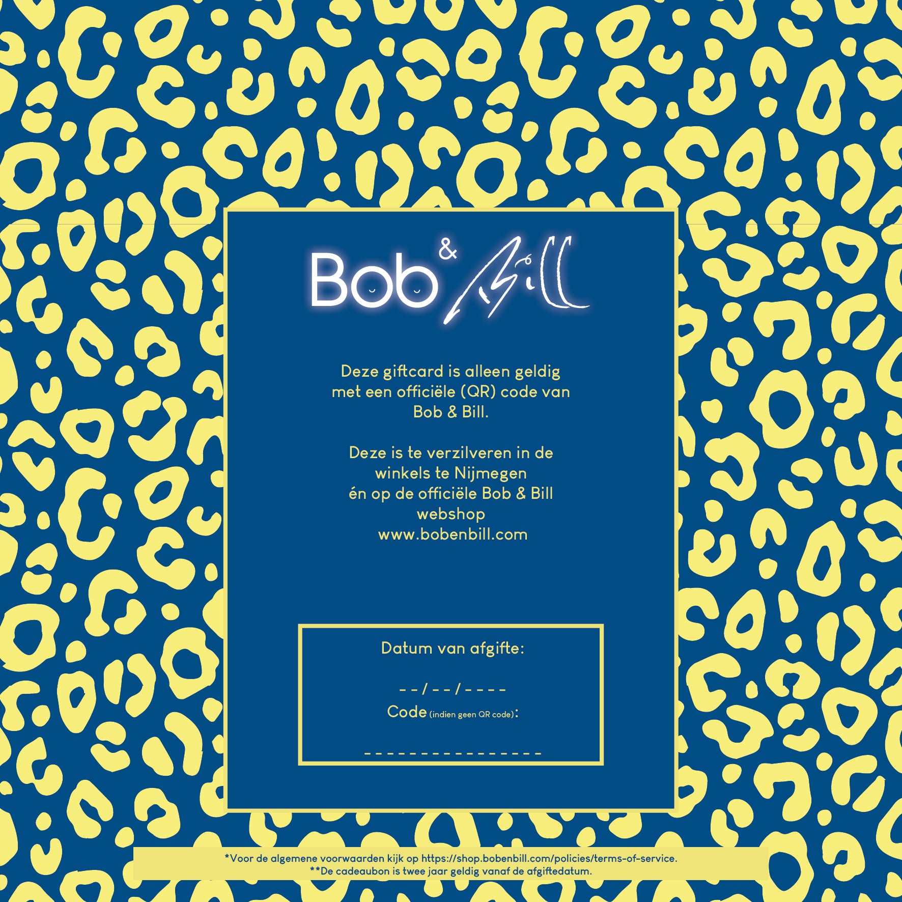 Yes! Bob & Bill heeft natuurlijk ook Cadeaubonnen. Wil jij een leuk cadeau aan iemand geven maar vind je het lastig kiezen? Geef dan een mooi verpakte cadeaubon van Bob & Bill cadeau. Zo kan de bofkont zelf lekker snuffelen tussen al het moois wat wij te bieden hebben. Zowel in de winkel als in de webshop te gebruiken.