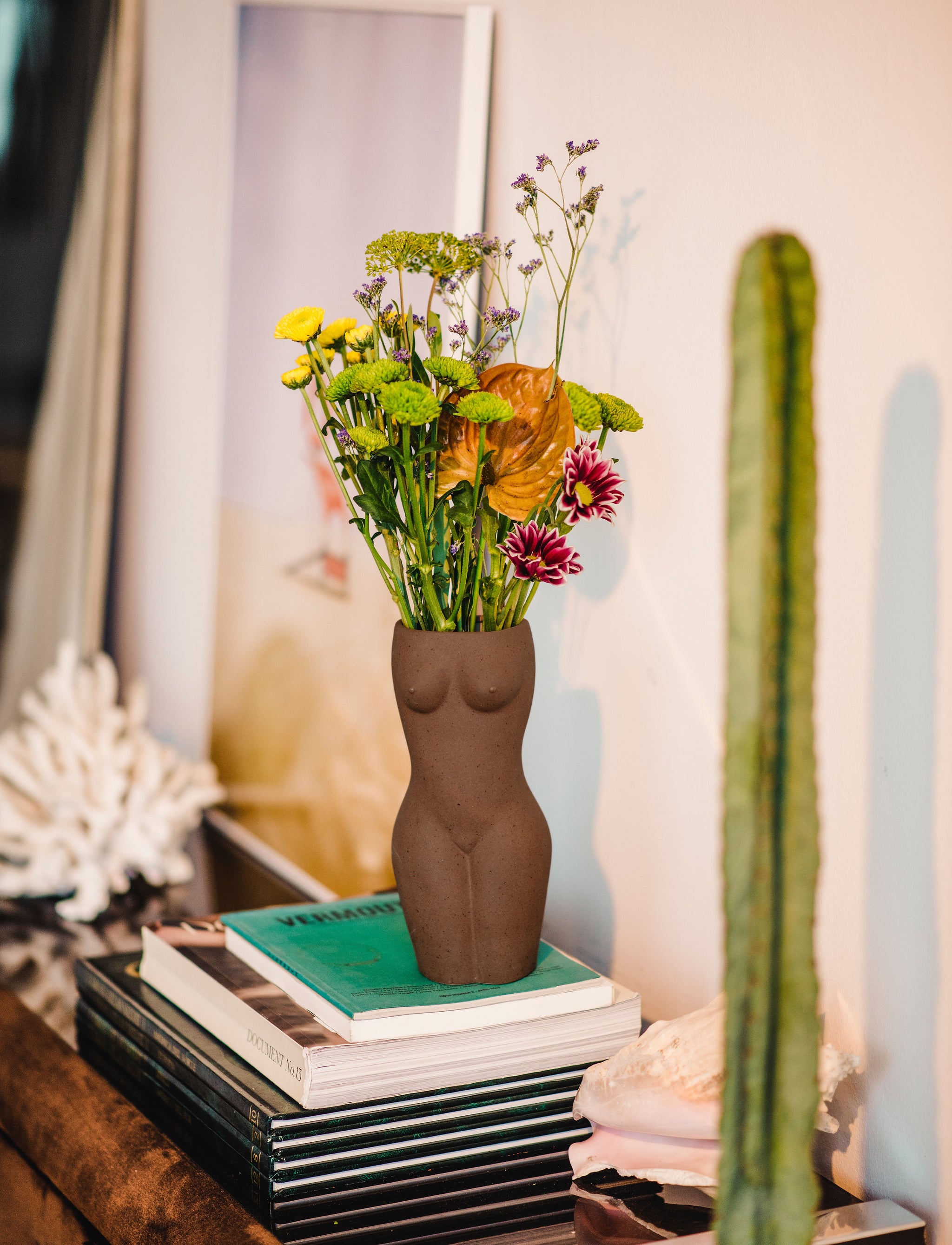 Keramische vaas in de vorm van een vrouwelijk lichaam, die de schoonheid en diversiteit van naaktheid symboliseert. Een statement piece in je vensterbank of op je bureau. Prachtig met bloemen, maar ook zonder iets erin een echte eyecatcher.