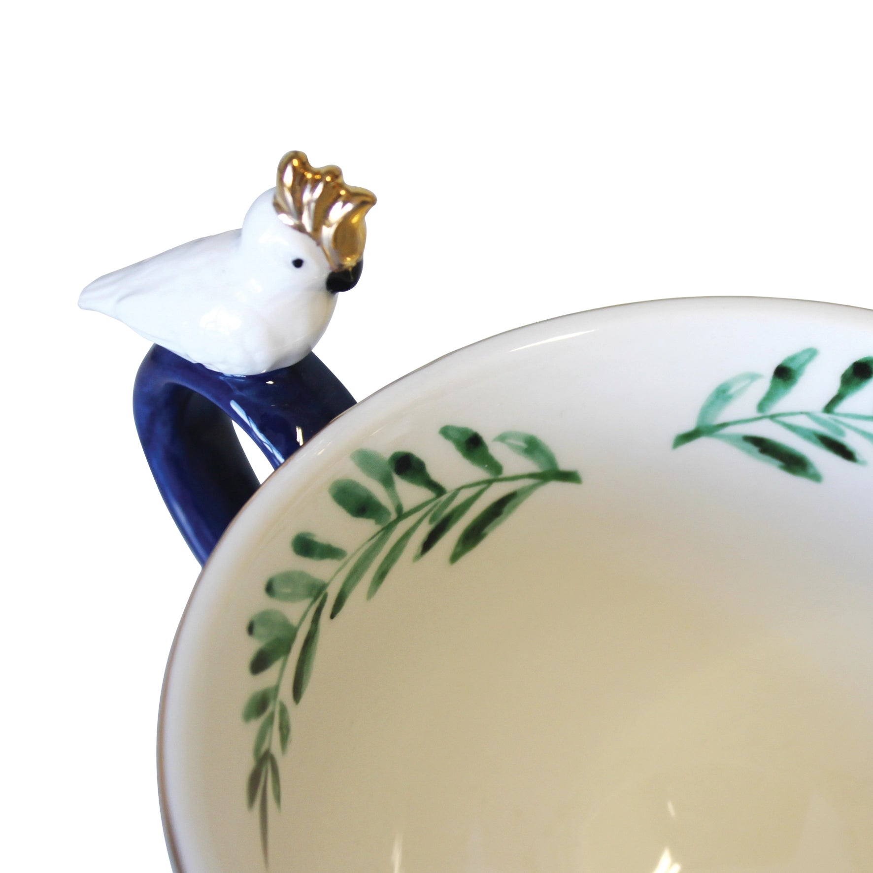 Kenmerken: Onze exclusieve Frida Kahlo-mok met tropisch ontwerp. Met gouden Frida-handtekening en een gouden parkiet op het handvat. Een mooie bladillustratie wikkelt zich rond de binnenkant van de mok. (Niet geschikt voor wasmachines) Verpakking: Komt in een mooie bedrukte doos.