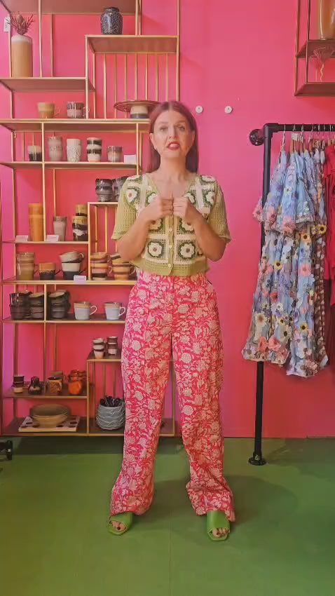 Brighten up your wardrobe with the HOLLY pants in vibrant pink! Deze stijlvolle broek met een verfijnde bloemenprint biedt zowel comfort als een flatterende pasvorm dankzij de hoge taille en rechte pijpen. Perfect voor een dag vol gemak en stijl. Combineer met de bijpassende LANY longsleeve voor een opvallende co-ord set. Ideaal voor zowel casual dagen als feestelijke gelegenheden – een must-have voor een veelzijdige garderobe!