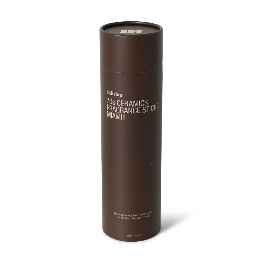 Onderdeel van onze keramiekcollectie uit de jaren 70, die een nostalgische stijl combineert met een subtiele geur. Laat fruitige noten de lucht vullen met een levendige, pittige geur. Naarmate de geur zich nestelt, komt er een warme, romige vanillegeur naar boven, die de luxe sfeer van de stranden van Miami oproept. De betoverende geur van palissanderhout voegt een verfijnde diepte toe die de rijke culturele charme van de stad weerspiegelt. Deze gebalanceerde geur brengt de levendige energie en ontspannen esthetiek van Miami in huis.Materiaal: 100% StonewareAfmetingen: 7,5x7,5x28cmGeur: palissanderhoutRecycle: Als de vloeistof op is, kan je dit vervangen voor een nieuwe vloeistof. Of het vaasje gebruiken voor bloemen.