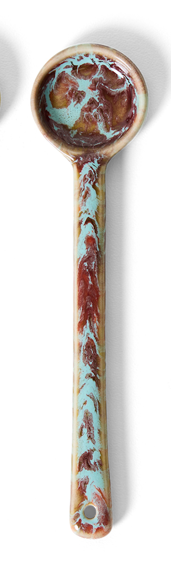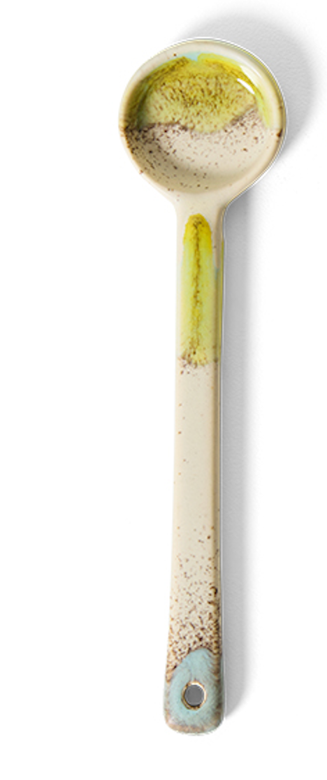 Voor wie houdt van dat laatste beetje schuim in zijn latte kopje, of gewoon suiker of melk gebruikt. De keramische lepels uit de jaren 70 zijn niet alleen handig, maar ook speels gekleurd. Verkrijgbaar in een set van vier, elk met zijn eigen unieke afwerking.