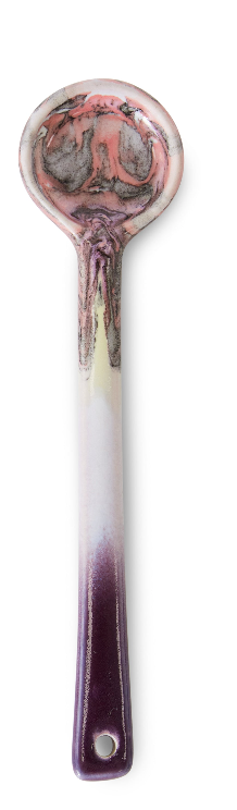 Voor wie houdt van dat laatste beetje schuim in zijn latte kopje, of gewoon suiker of melk gebruikt. De keramische lepels uit de jaren 70 zijn niet alleen handig, maar ook speels gekleurd. Verkrijgbaar in een set van vier, elk met zijn eigen unieke afwerking.