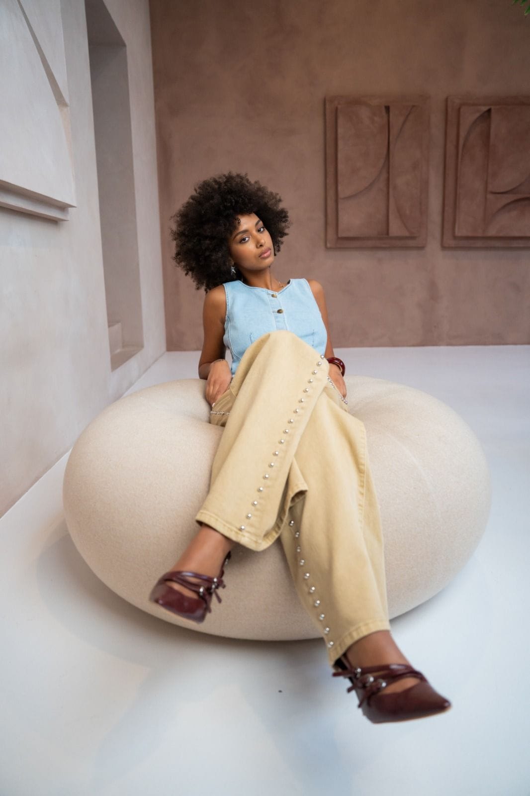 JUTTA STUD JEANS - CAMEL