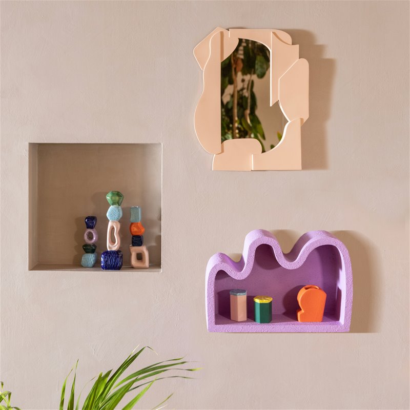 Deze abstracte wankele plank is een musthave in je interieur! De chunky look in combinatie met fel paars maakt een echt statement. Je kunt de plank ophangen met behulp van het ophangsysteem aan de achterkant voordat je het afwerkt met kleine ornamenten en planten.