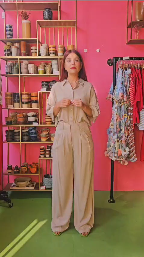 Materiaal70% viscose, 30% linnenPasvormValt op maat. Zijlengte maat 38: 109cm