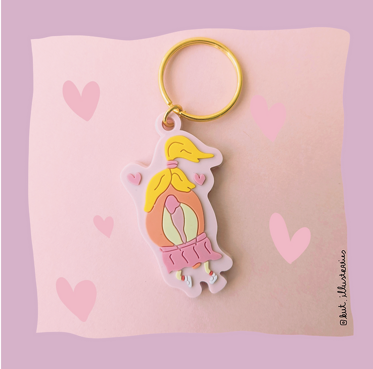 Rubberen Huppelkut Sleutelhanger met goud kleurige ring.