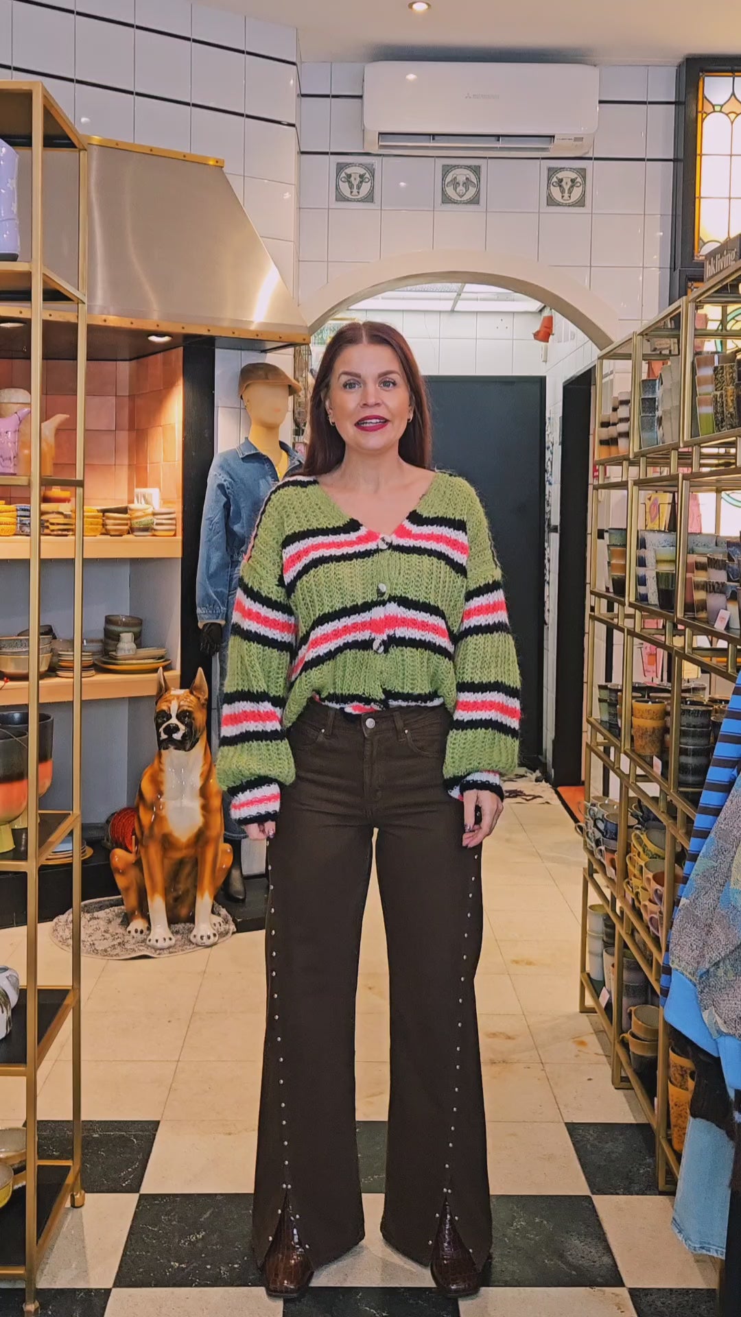 Dit prachtige vest mag niet ontbreken in je garderobe. Leuk met een mesh/kanten shirt eronder.Productbeschrijving- breisel- lange mouw- v-hals- sluit dmv knopenMateriaal30% mohair, 30% polyamide en 40% acrylPasvormOne size. Xs t/m l