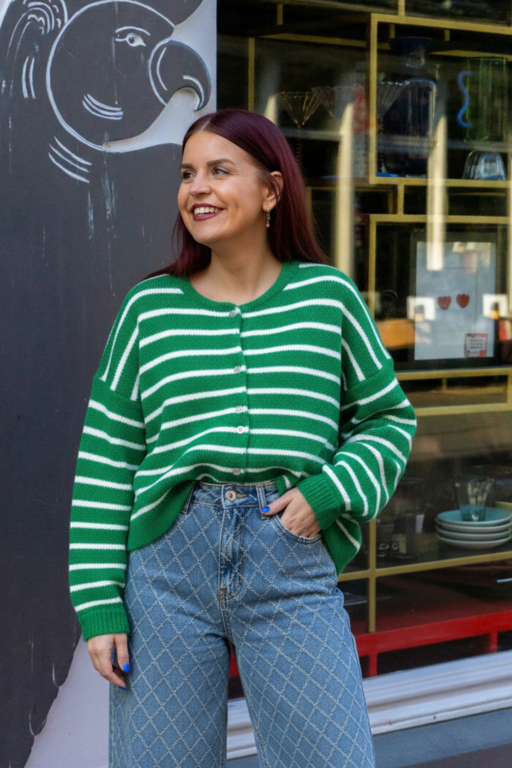 MELINE STRIPED CARDIGAN - GREEN/OFFWHITE