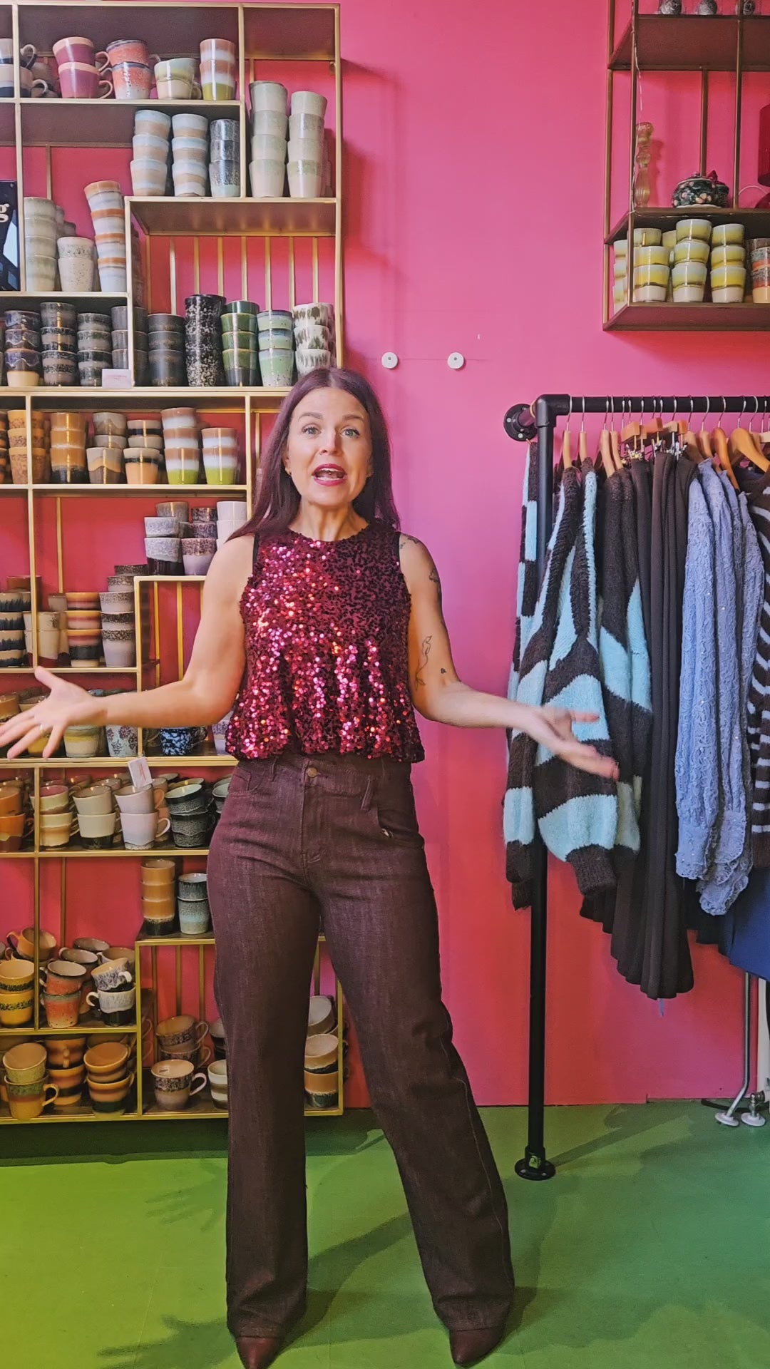 MARYAM SEQUIN TOP - BORDEAUX
