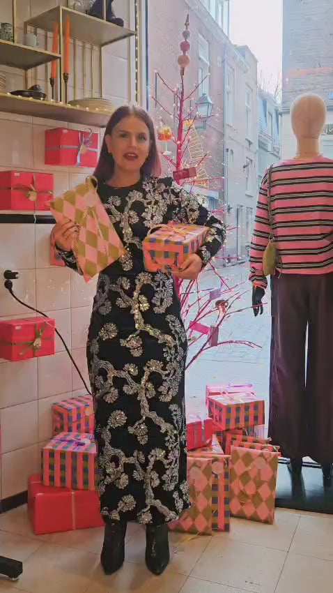 Kleed je aan en vier al je speciale momenten met onze elegante en verheven feestcollectie, ontworpen om je het vertrouwen te geven om op te vallen. Dit item is gemaakt van velvet, een prachtige stof met glans en geeft echt een extra dimensie aan het ontwerp. Daarop zijn er sequins geborduurd, wat de jurk echt tot een party outfit maakt en zeer geschikt voor zowel formele als informele gelegenheden.